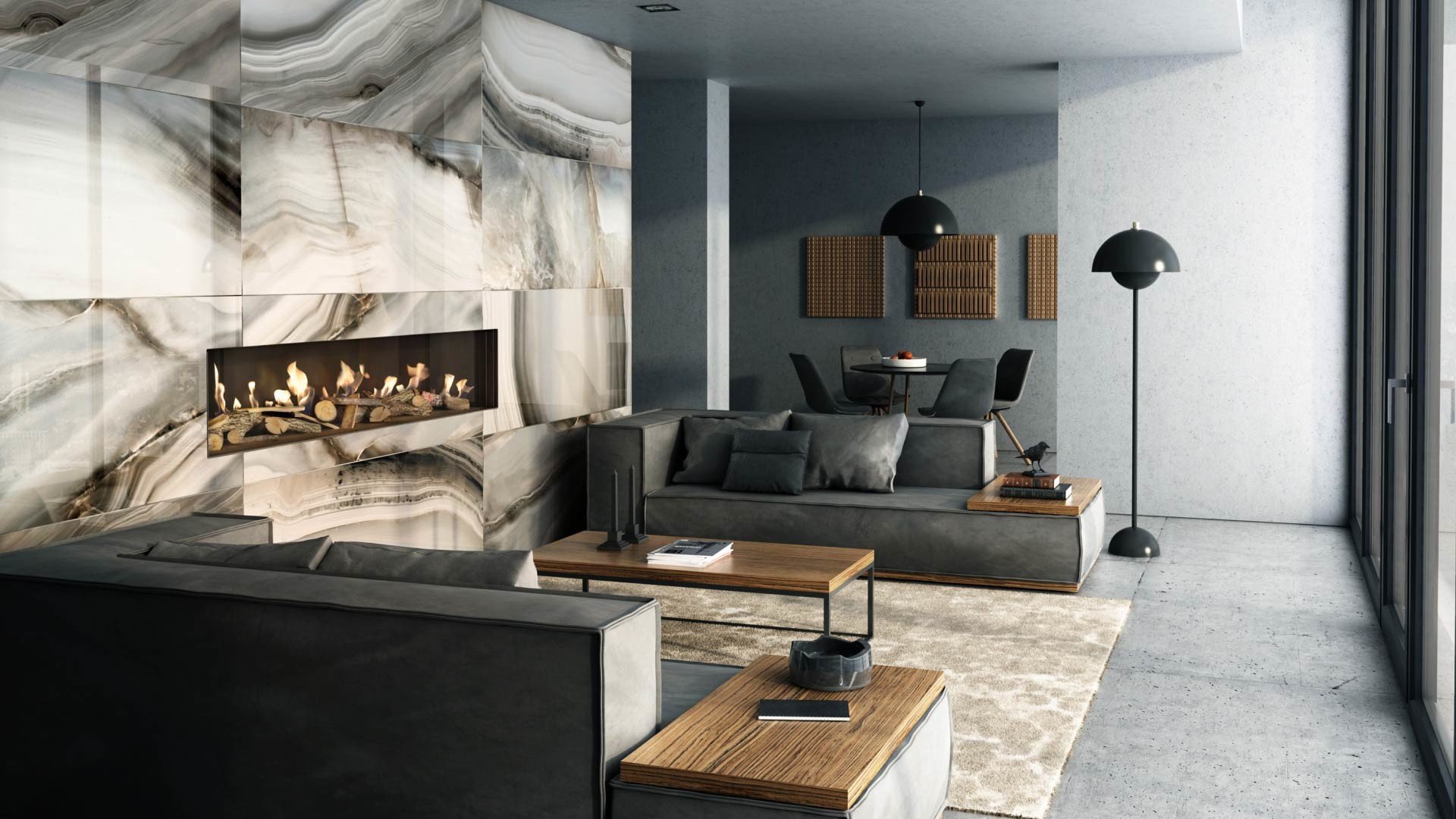Niezakłócona wizja ognia dzięki niewidocznej ramce fasady i minimalnej ilości widocznych elementów stalowych.